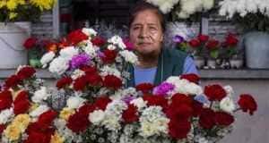 Leonor Ontiveros vende flores en la puerta del cementerio San Antonio de Padua en Salta, ...