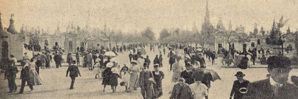 Interesante toma desde la entrada del cementerio del oeste en 1908, donde vemos el pasillo central colmado de visitantes con vestidos de época, algunos de luto y otros con trajes normales.